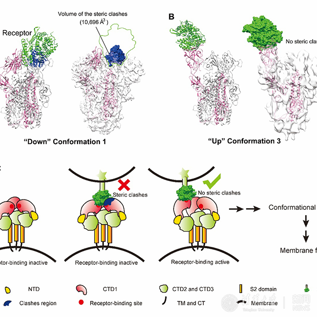 兩研究組共同協(xié)作,解析了SARS冠狀病毒刺突蛋白的冷凍電鏡結(jié)構(gòu),并捕捉到了病毒侵染過程中關(guān)鍵的中間狀態(tài),極大地促進了研究界對病毒侵染機制的理解。
