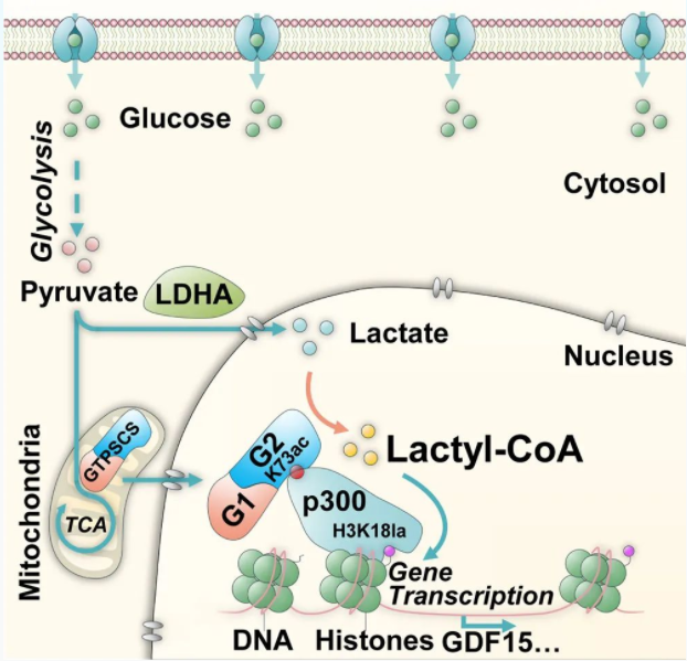 綜上,該研究鑒定到了細(xì)胞核內(nèi)的乳酰CoA合成酶GTPSCS,揭示了GTPSCS在GBM發(fā)生發(fā)展中的新功能;闡明了在細(xì)胞核中,GTPSCS結(jié)合p300,利用乳酸原位生成乳酰CoA,從而增強(qiáng)組蛋白H3K18la修飾,調(diào)控GDF15表達(dá),最終促進(jìn)膠質(zhì)母細(xì)胞瘤(GBM)進(jìn)展的分子機(jī)制。該模型代表了Warburg效應(yīng)的全新表觀遺傳調(diào)控模式,也為靶向代謝重編程治療GBM提供了新的思路。
